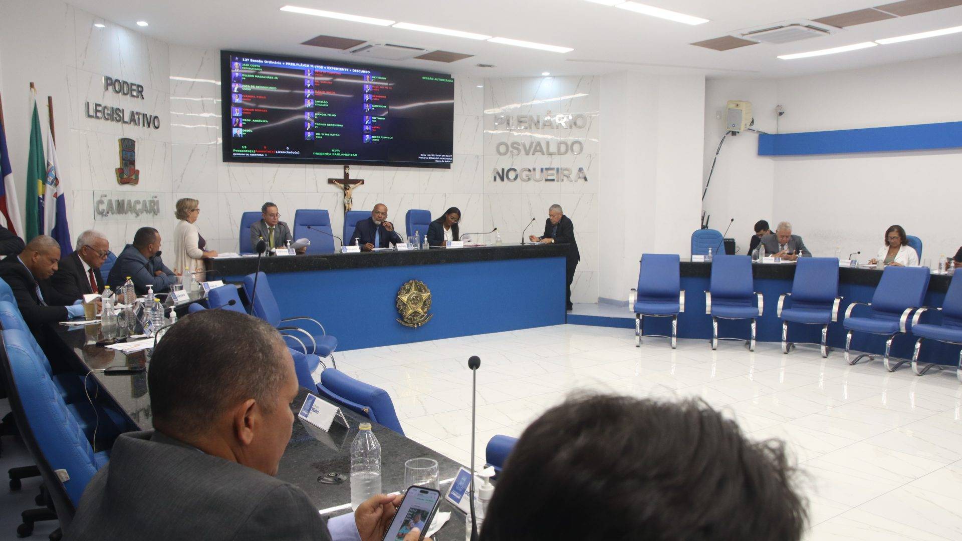 A Câmara de Camaçari realizou, na manhã desta terça-feira (14/05), a 12ª Sessão Ordinária e a 10ª Sessão Extraordinária, durante as quais foram debatidas 28 matérias em pauta na Casa Legislativa. Entre os destaques esteve a aprovação, em segunda turno, do Projeto de Lei Nº015/2024, que institui carga horária especial aos servidores da Casa Legislativa ocupantes dos cargos de produtor, repórter de TV, editor de texto e analista de comunicação.