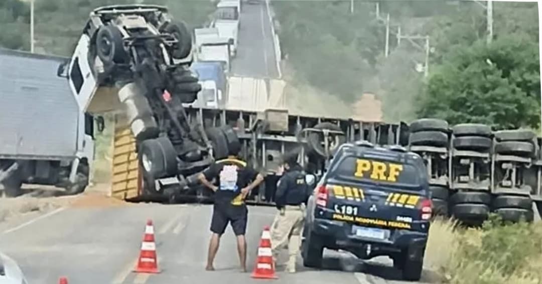 Motoristas que trafegam pela BR-410, no trecho que liga Ribeira do Pombal a Tucano, no Nordeste da Bahia, enfrentam lentidão no trânsito na madrugada desta sexta-feira (04) devido ao tombamento de uma carreta carregada com um contêiner. O veículo ficou atravessado na pista, em posição de “L”, apesar do susto não há registro de feridos.