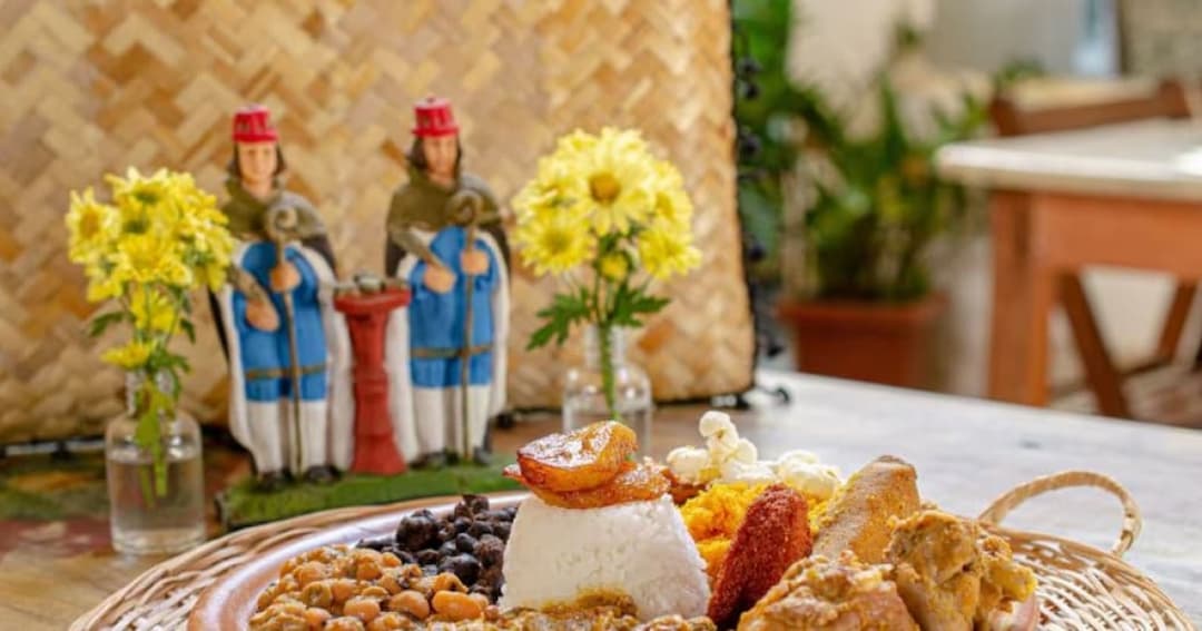 A especialidade reúne diferentes ingredientes em um só servida, entre eles, xinxim de frango, acarajé, abará, feijão preto, feijão fradinho, feijão branco, abóbora, pipoca, vatapá, o próprio caruru (feito de quiabo), milho branco, inhame, batata doce, rapadura, arroz e cana.