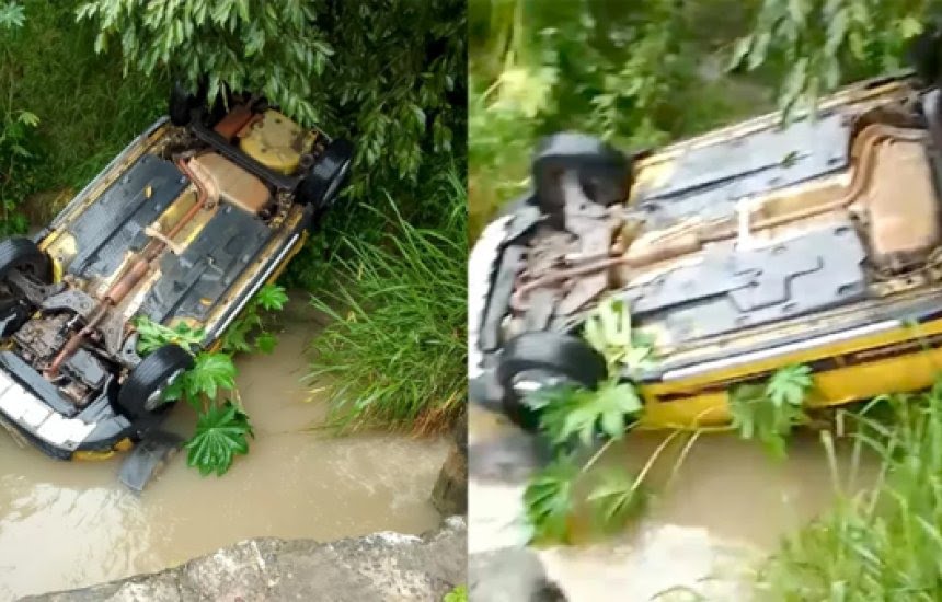 Um veículo caiu em um córrego, na noite dessa sexta-feira (17), no bairro Jardim Limoeiro, em Camaçari.